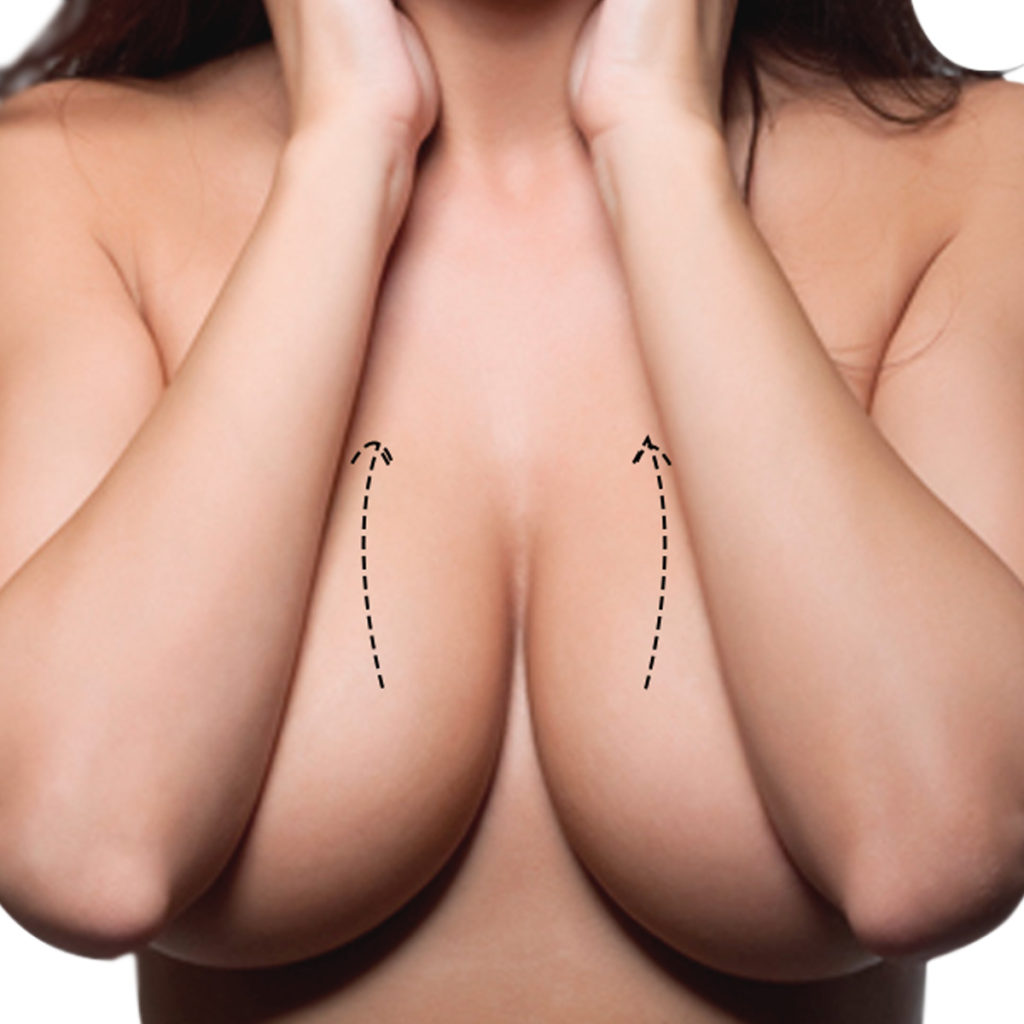 Cuando la mama, además de caer ha perdido o posee poco volumen, se puede también colocar una prótesis. La mastopexia puede reducir también el tamaño de la areola cuando sea muy grande.
