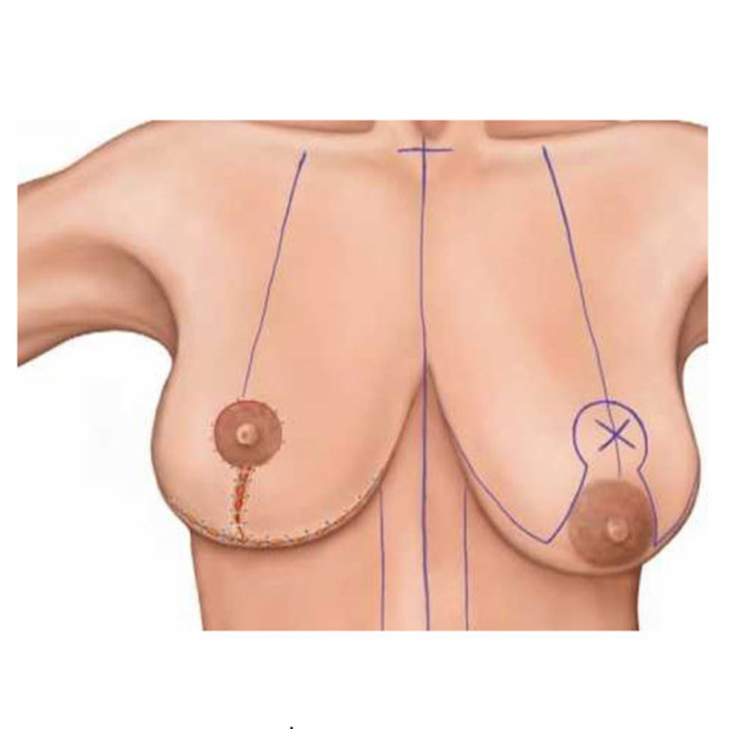 El propósito de la intervención es la reducción y remodelamiento de las mamas, colocando la areola-pezón en su posición correcta.